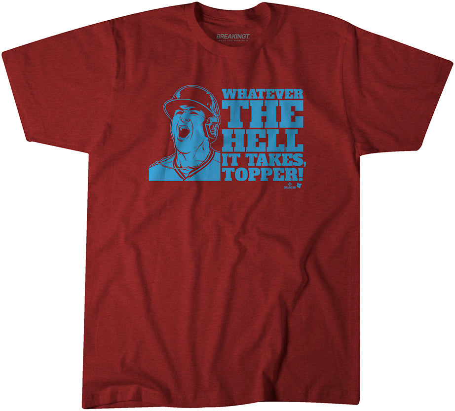 Looking for a stylish and trendy t-shirt? Look no further! Our J.T. Realmuto Whatever The Hell It Takes Topper is made from 100% cotton, ensuring that you stay cool and comfortable all day long.